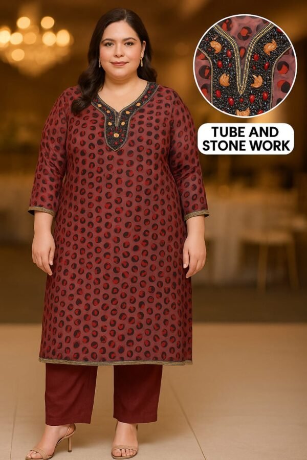 Chic mehroon printed georgette kurti designed with a flattering straight fit. The neckline is